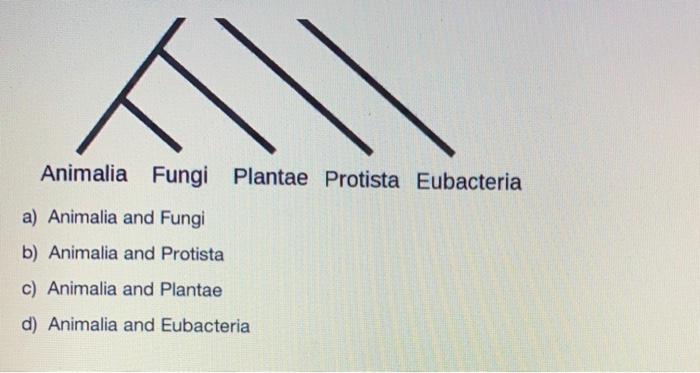 Animalia Fungi Plantae Protista Eubacteria Animalia Fungi Plantae Protista Eubacteria a Animalia and Fungi b Animalia and Protista c Animalia and Plantae d Animalia and Eubacteria. Answer 1 of 3. 1 Answer to Which group of organisms is thought to have been the most recent common ancestor of three other kingdoms plants animals and fungiA Archaebacteria B eubacteria C myxomycota D protista.